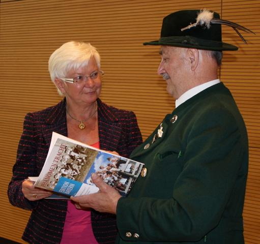 Fotos: Eindrücke vom Zusammentreffen der Bayerischen Trachtenverantwortlichen mit Bundesinnenminister Friedrich in der Reichstagskuppel – a) Gruppenaufnahme und b) Otto Dufter mit Minister Friedrich