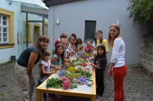 Wie jedes Jahr hat die Trachtengruppe Ebenhausen auch heuer wieder am Ferienprogramm der Gemeinde teilgenommen. Erstmals seit langem gab es diesmal wieder zwei Frauen beim Spinnen zu bestaunen. Sie erzählten von den Handarbeiten zu Urgroßmutters Zeiten. Danach wurden traditionell Blumenkränzchen für die Haare gebunden: Die zwölf Mädchen fertigten mit Hilfe einiger Frauen prachtvollen Kopfschmuck und einige auch noch kleine Blumensträuße. Nachdem man sich an Schnittchen und Getränken gestärkt hatte, bekamen die Kinder von der Trachtenwartin passende Kleidung aus Rock, Schürze und Tuch und unter Anleitung der Jugendtanzleiter wurden drei fränkische Volkstänze eingeübt. Am Ende des Nachmittags zeigten die Teilnehmer stolz und in voller Montur den Eltern, was sie gelernt haben.