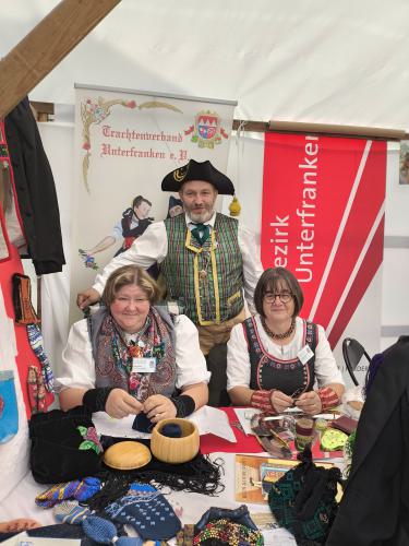 Viele interessierte Gäste und Trachtenträger besuchten den Stand und holten sich Informationen und Auskünfte zur Herstellung und Beschaffung unserer unterfränkischen Trachten und zu den angebotenen Veranstaltungen des Trachtenverbands und insbesondere unseres Gaues.