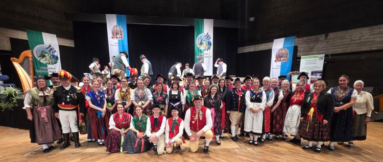 Zu diesem besonderen Anlass machten sich 46 Trachtlerinnen und Trachtler aus unserem Verband auf den Weg, um gemeinsam einen unvergesslichen Abend zu erleben. Wir hatten die große Ehre, mit einem Auftritt im Festsaal dabei zu sein und unsere Tänze zu präsentieren. Getanzt wurden das Gergla und der Schecher – auf einer großzügigen Tanzfläche, die uns mit 13 Tanzpaaren der Gautanzgruppe einen gelungenen und schwungvollen Auftritt ermöglichte.